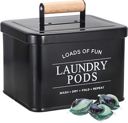 Porte-dosette à linge en métal noir Porte-poudre Conteneur de dosettes de blanchisserie de ferme avec couvercle à poignée